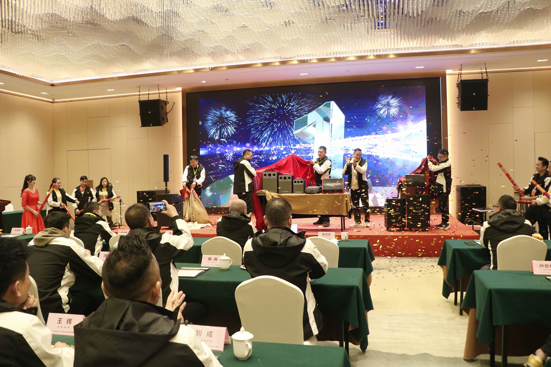 新品亮相环节将本次会议推到了[敏感词],罗总、黄总等人共同为新产品进行揭幕,一同见证维尔晶新品正式亮相。此次新品不仅代表了维尔晶技术的突破,也是维尔晶未来在音响行业进一步布局的重要规划,更是维尔晶践行实现民族品牌长远发展的体现。
